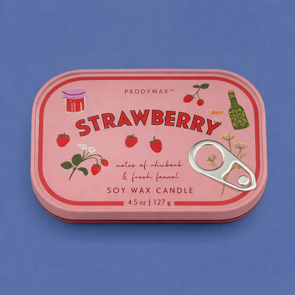 Diese liebevoll gestaltete Duftkerze bringt süße, fruchtige Akzente in dein Zuhause. Die dekorative Metalldose im charmanten Retro-Stil erinnert an klassische Sardinenbüchsen und ist mit handgezeichneten Illustrationen versehen. Mit ihren zwei Dochten erzeugt die Kerze ein warmes, gleichmäßiges Licht und sorgt für eine gemütliche Atmosphäre.