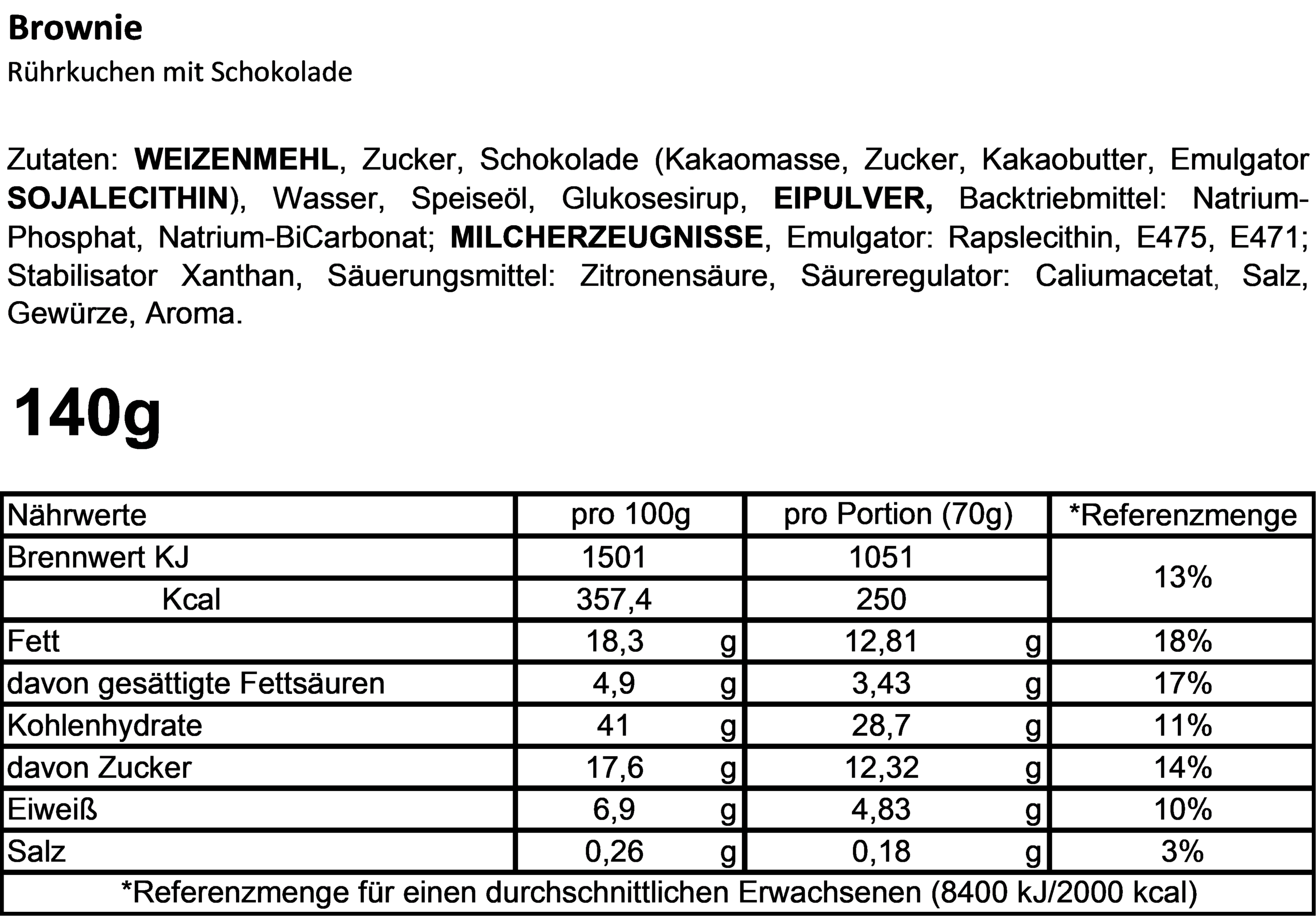 Brownie-Kuchen (ca. 140g Inhalt)