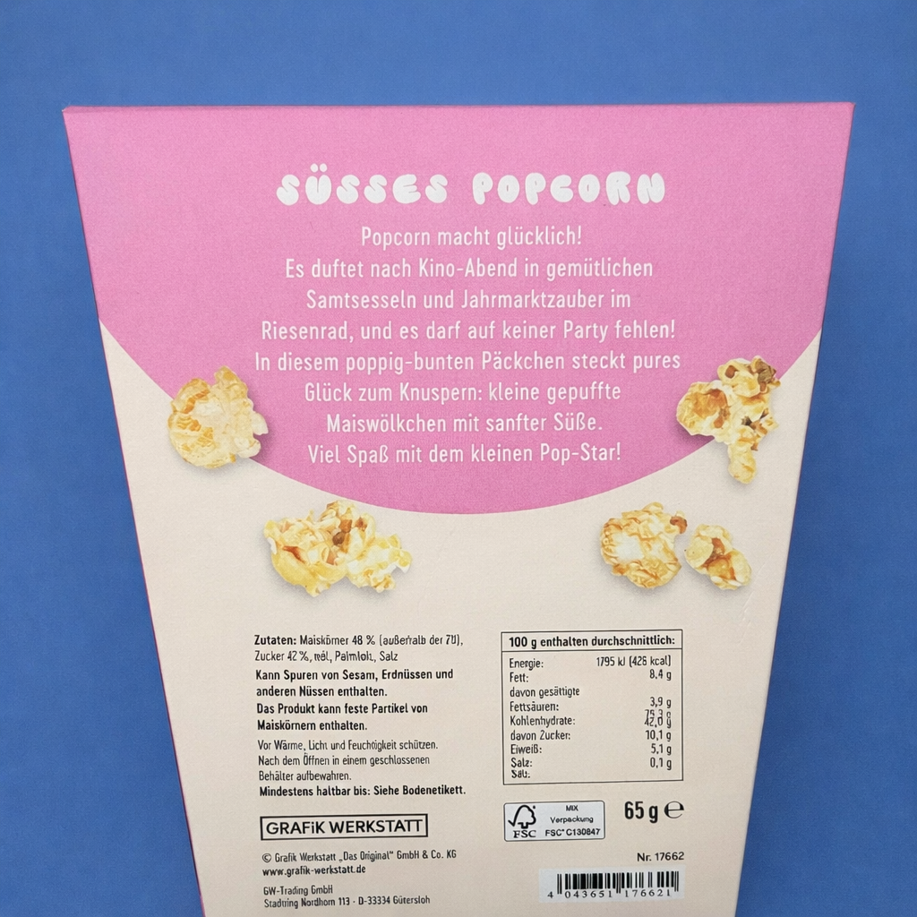 Ob als kleine Aufmerksamkeit, Mitbringsel oder liebevoll ausgewähltes Präsent, dieses Popcorn verbindet Design und Genuss auf perfekte Weise.